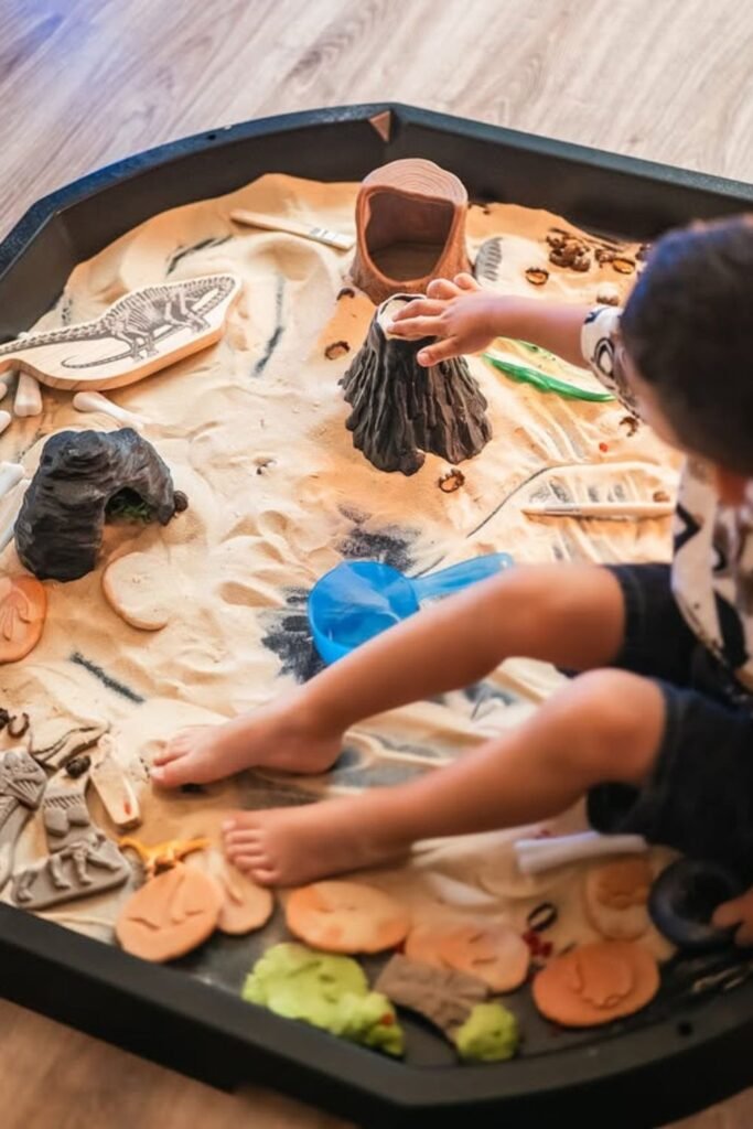 Add cups for pouring or brushes for cleaning “fossils.” Scooping and sifting work out your hand muscles and help you stay focused.