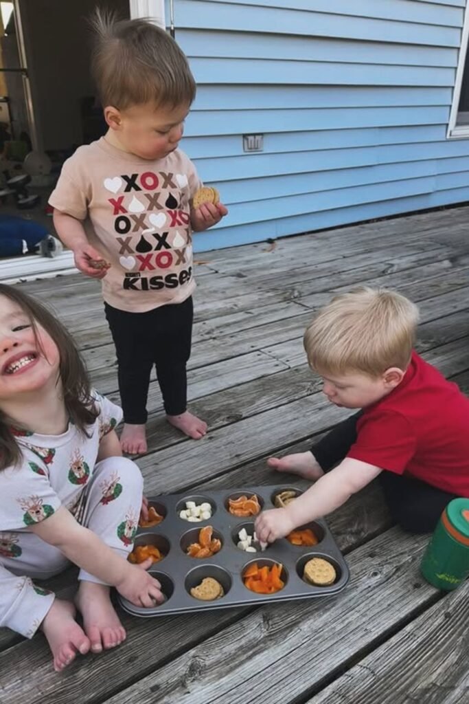 Snack time can turn into a quiet learning moment without anyone noticing. Grab a muffin tin and drop different bite-sized foods into each section.