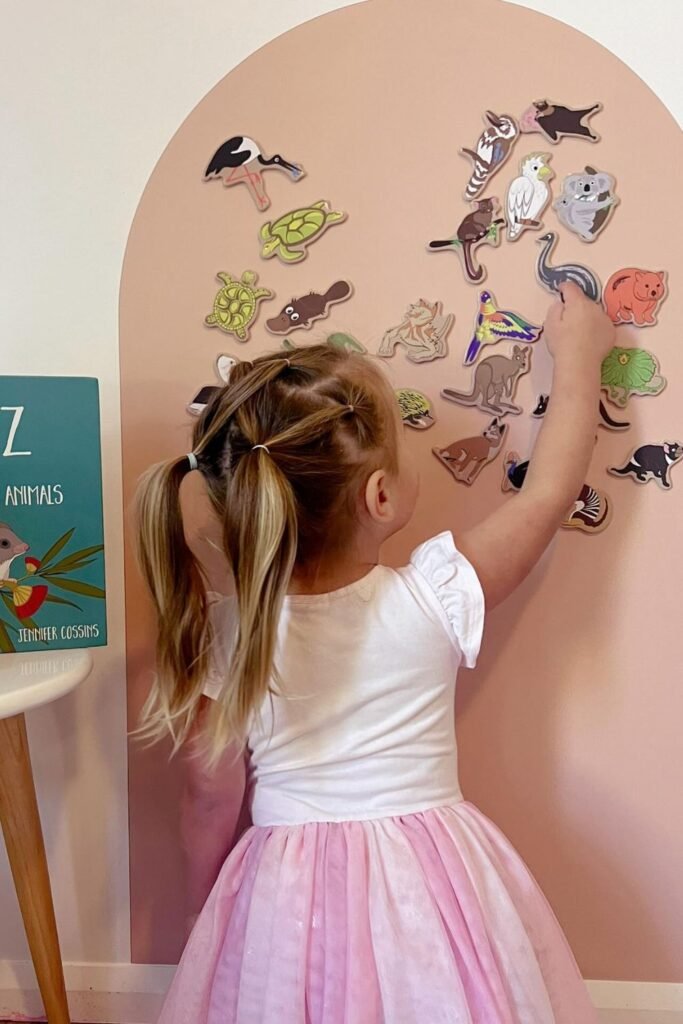 Walls can become learning spaces without turning your home into a classroom. Stick magnetic animals on a board and let your child explore them freely.