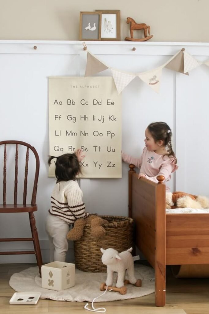 Turn a plain wall into a daily discovery spot. An alphabet poster at your childs eye level invites quick learning moments without sitting down for a lesson.