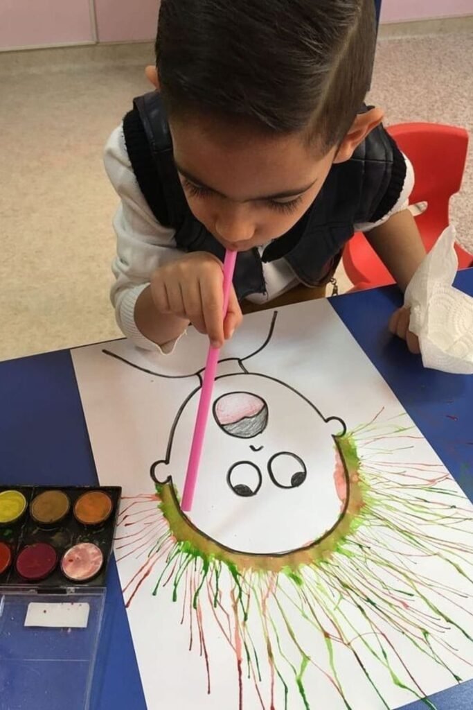 Splat some watery paint around a basic face or shape then have the kids blow in various directions to make crazy patterns.