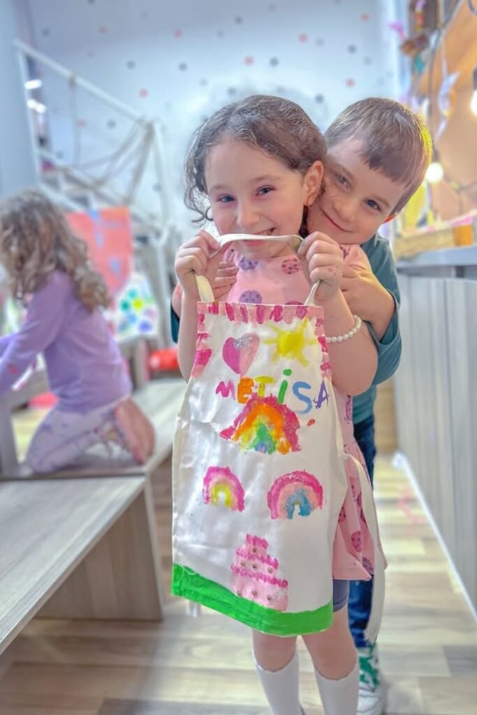 Once the paint dries, the bags become functional and the kids feel a sense of accomplishment each time they use them.