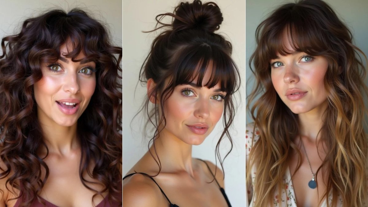 This bold look delivers both charm and fun. To master this style, focus on defining your curls and softening the bangs into a curved, face-flattering shape.