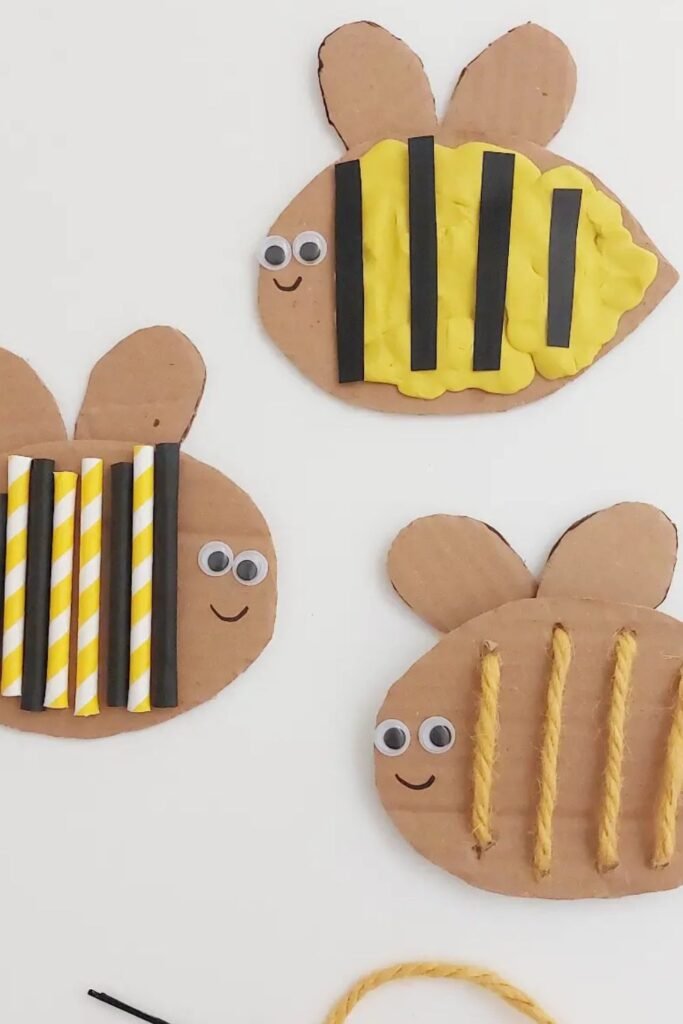 Scrap cardboard gives kids freedom to experiment without worrying about mistakes. Cutting simple bee shapes creates the base.