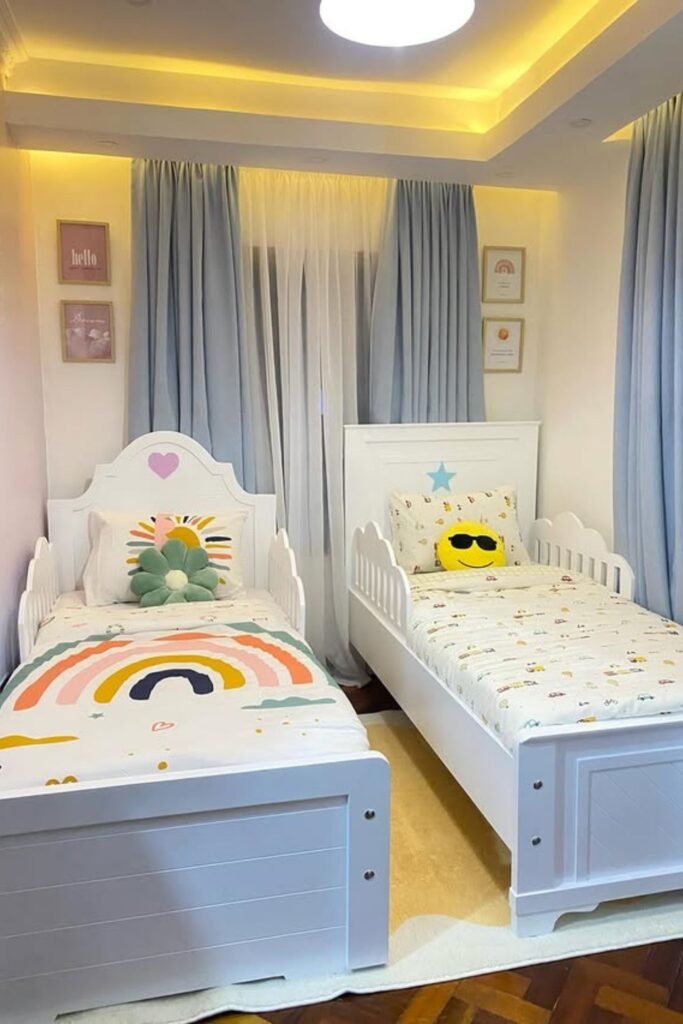 Sharing feels easier when everything looks fair. Two matching beds placed side by side instantly bring balance to a narrow room.