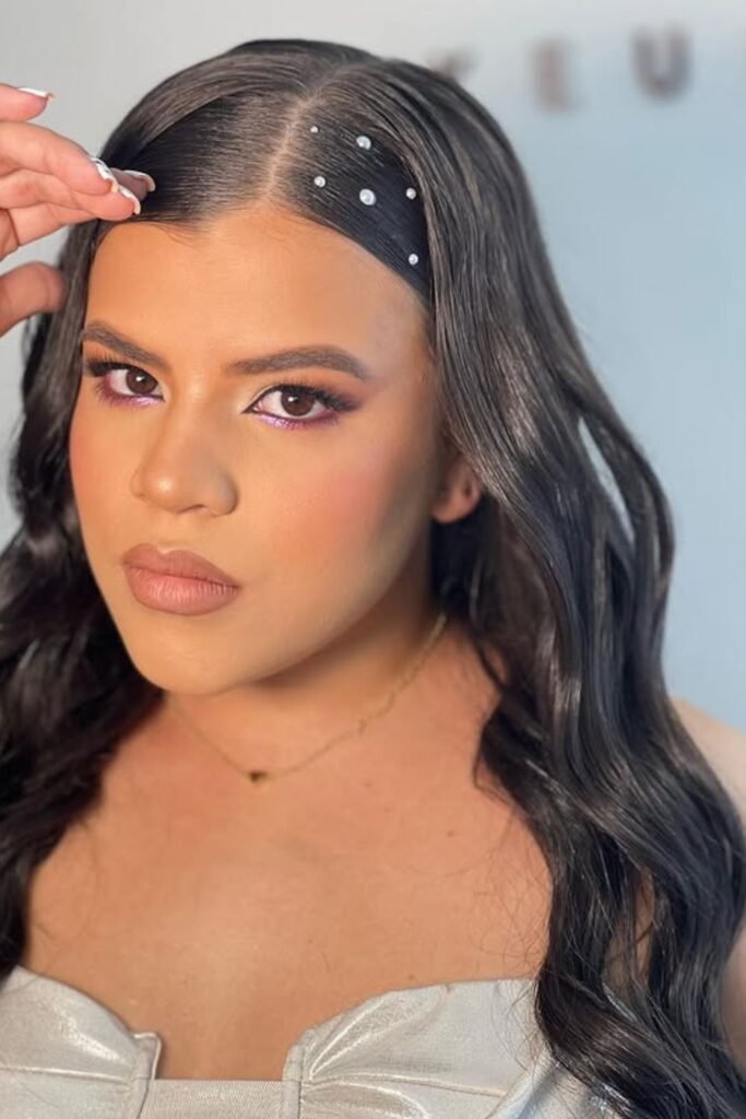 Pearls along the part add a birthday touch to these soft waves, especially when you want shine without using heavy accessories.