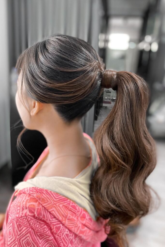 Height at the crown brings structure to this ponytail, especially when you want a clean finish that still shows volume.