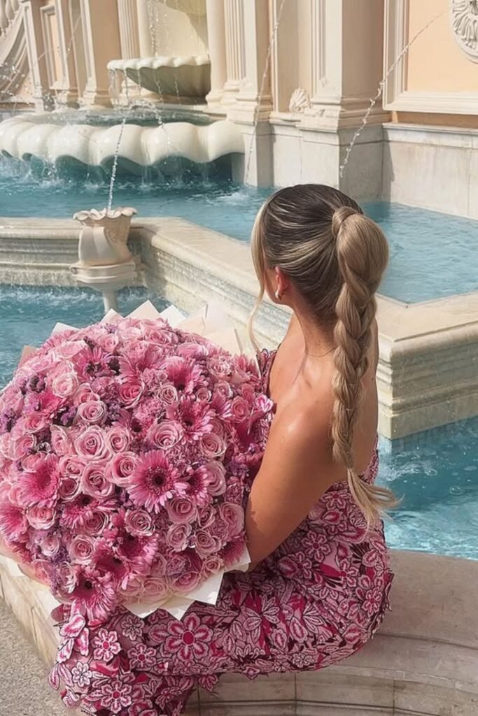 Smooth roots leading into a single long braid make this style perfect for birthdays spent outdoors or anywhere warm.