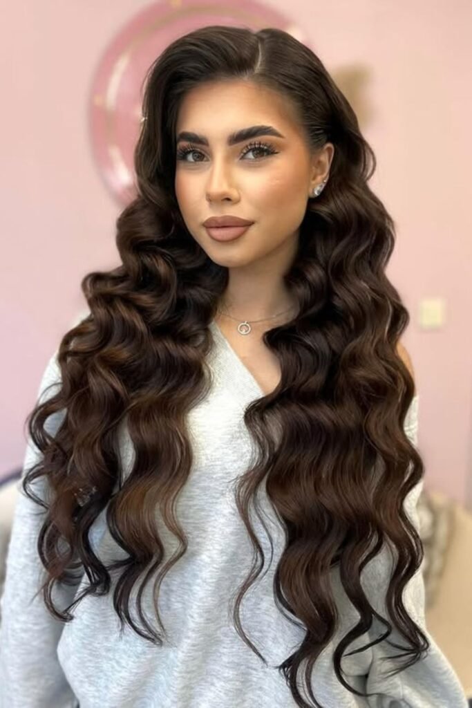 Height near the part gives these long waves their birthday impact, especially when you want hair that frames the face without hiding it.