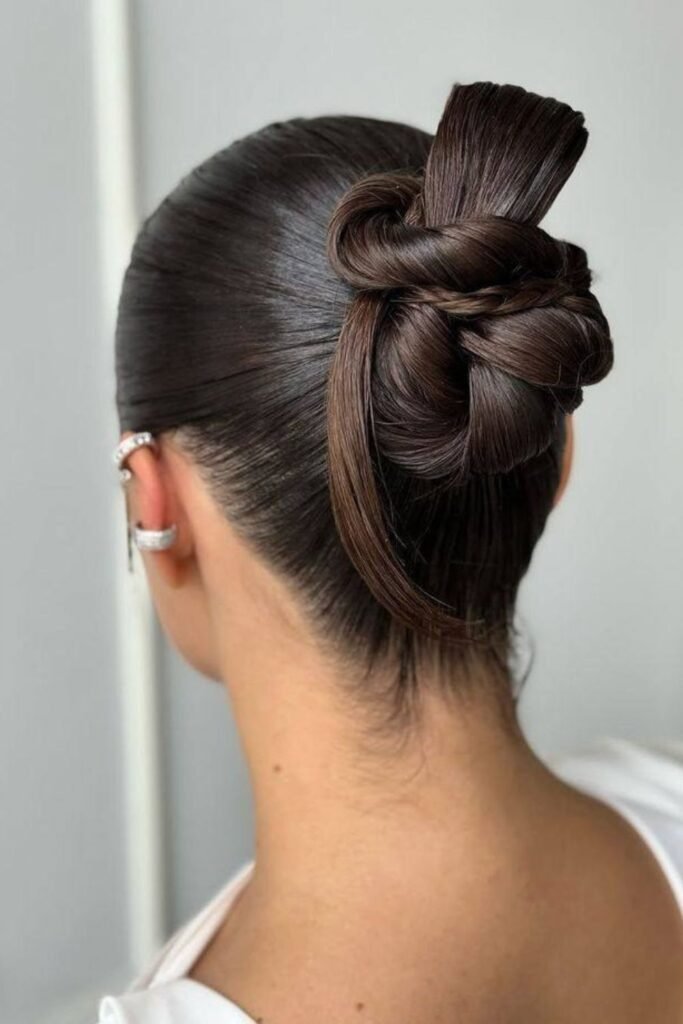 Sharp, sculpted folds give this bun a bold twist, especially if you like styles that look intentional and modern.