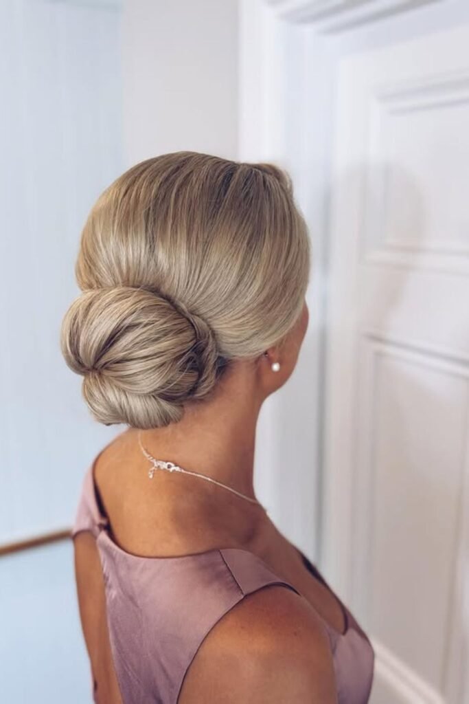 This bun has a smooth, clean finish that makes it look elegant and ageless.