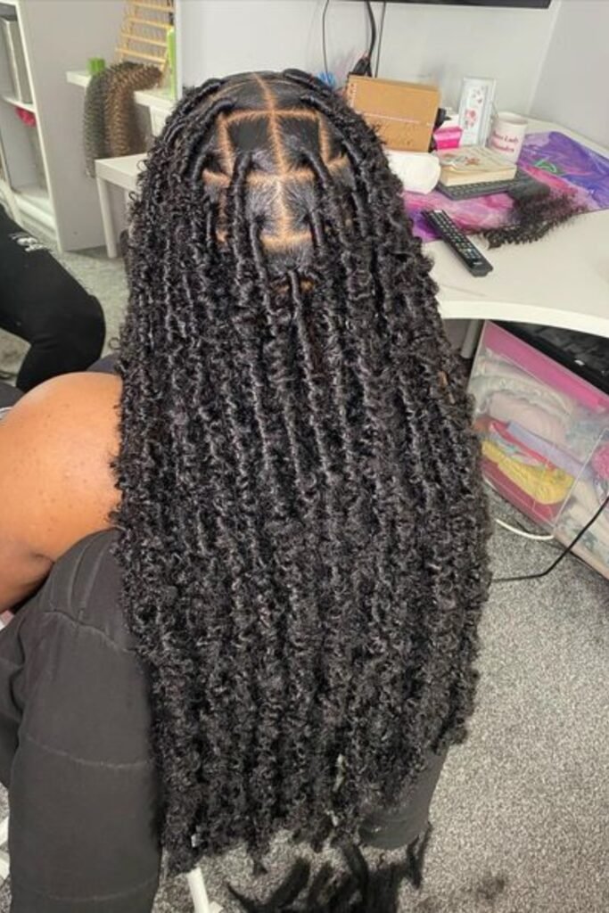 14. Long Butterfly Locs with Square Parting