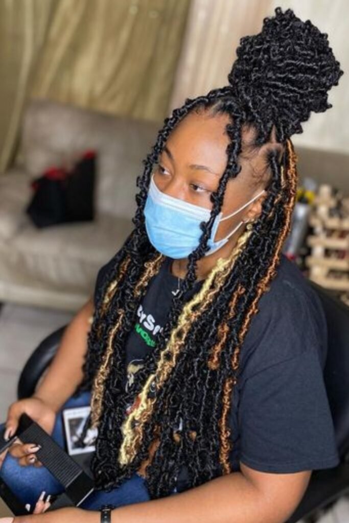 Blonde highlights intertwined with dark butterfly locs bring a fresh twist to the classic style.