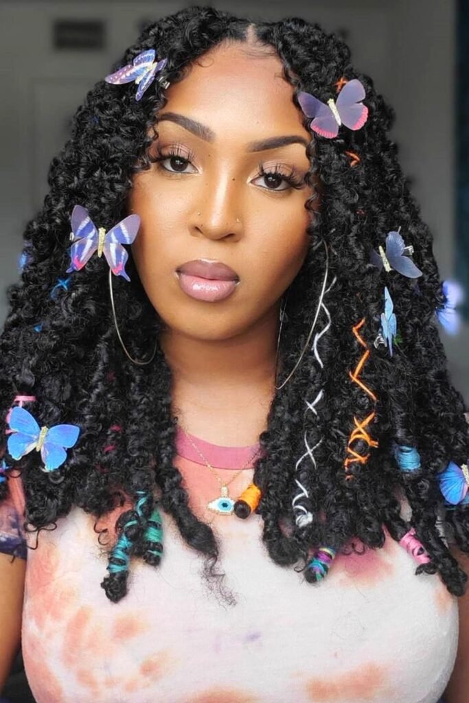 Butterfly-embellished locs add a playful and creative twist to the classic butterfly locs style.