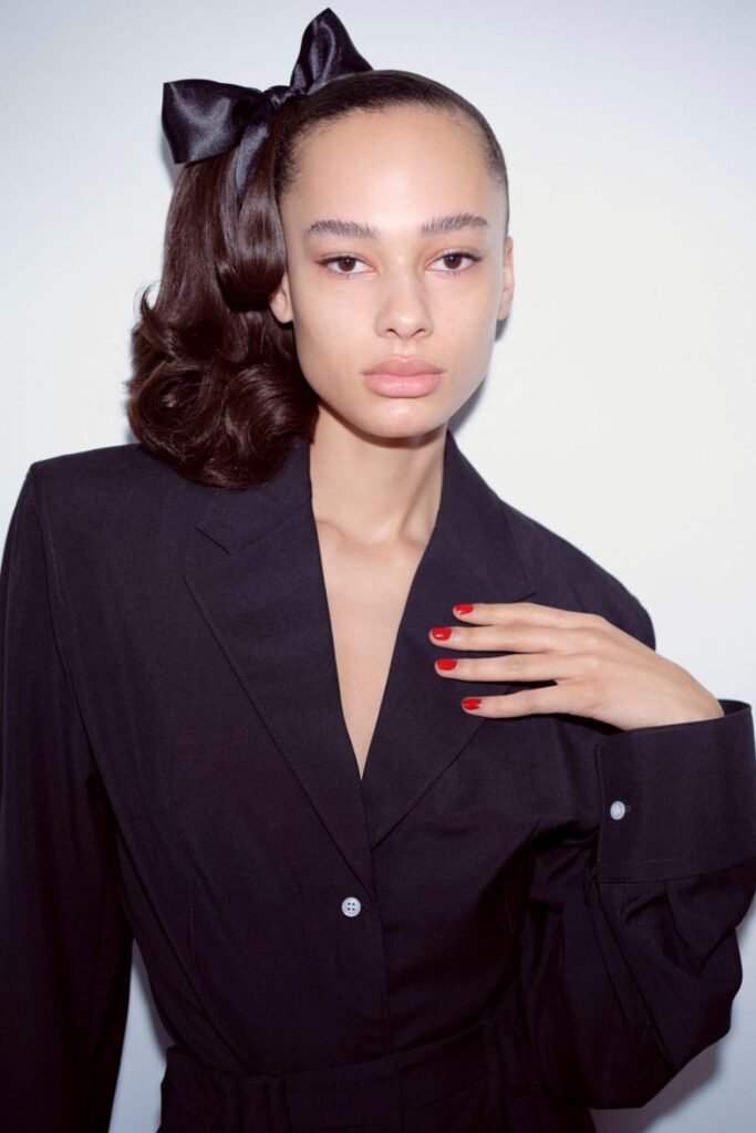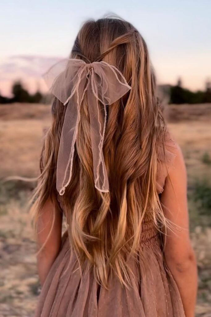 The translucent ribbon bow gives the hair a dreamlike look without changing its natural texture.