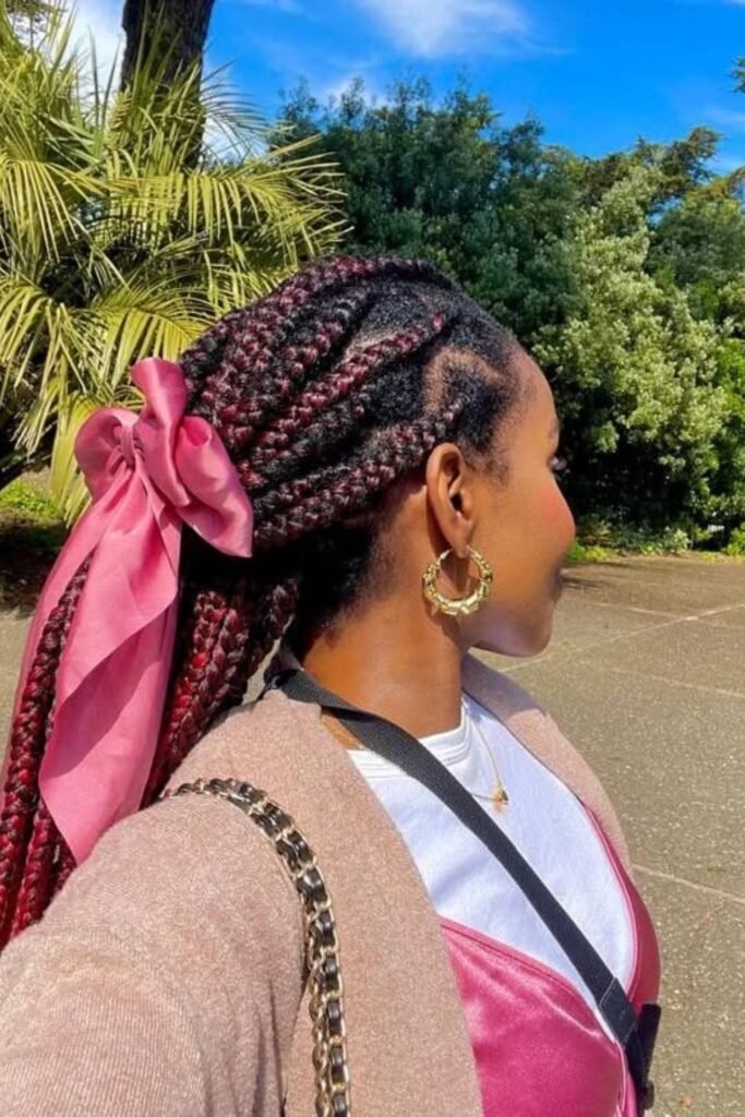 To style it, make tight feed-in braids that go toward the crown, pull them all into a ponytail, and use a firm elastic to hold everything in place.