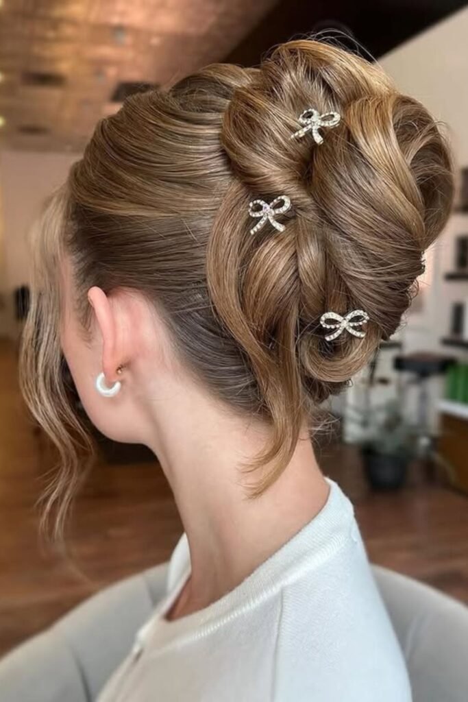 Little rhinestone bows provide shine without being too much of a distraction. They’re great for matching the sparkle of a uniform.