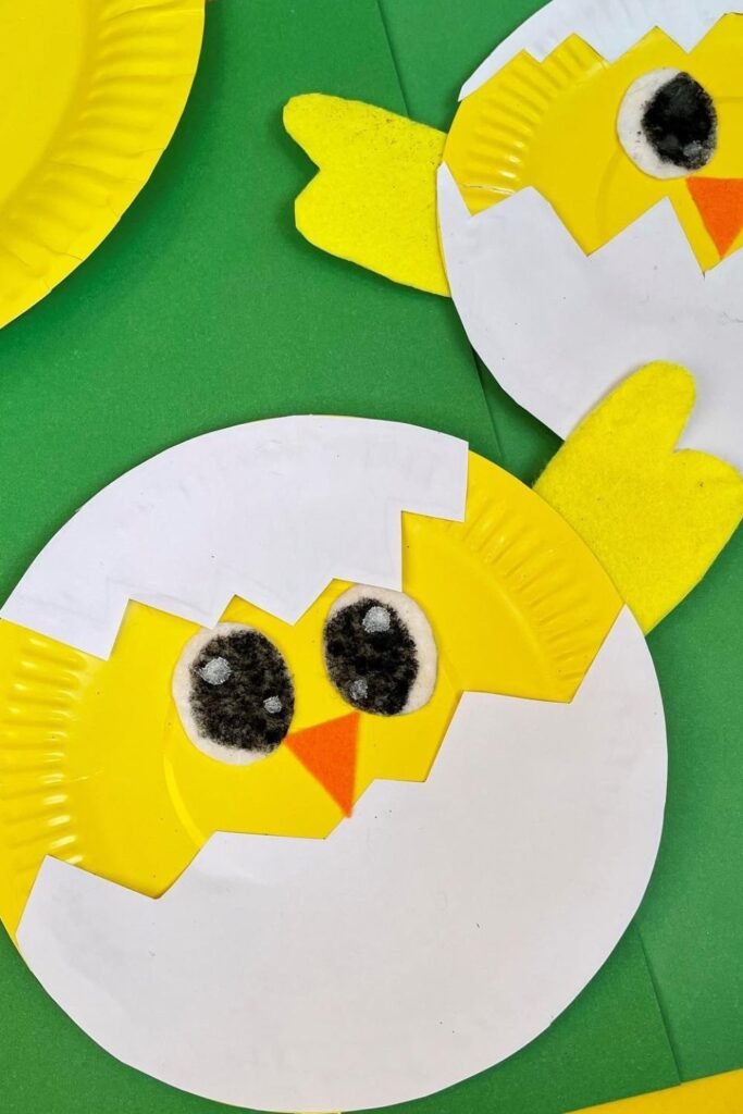 Cracked eggshells instantly tell a story kids understand without explanation. Cut zigzag edges into paper plates.