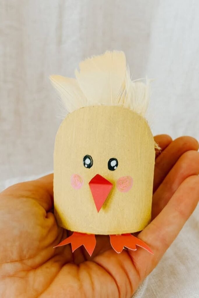 Real eggs inside a craft instantly make kids slow down and care about what they’re making. Cut egg carton sections, shape a small hen.