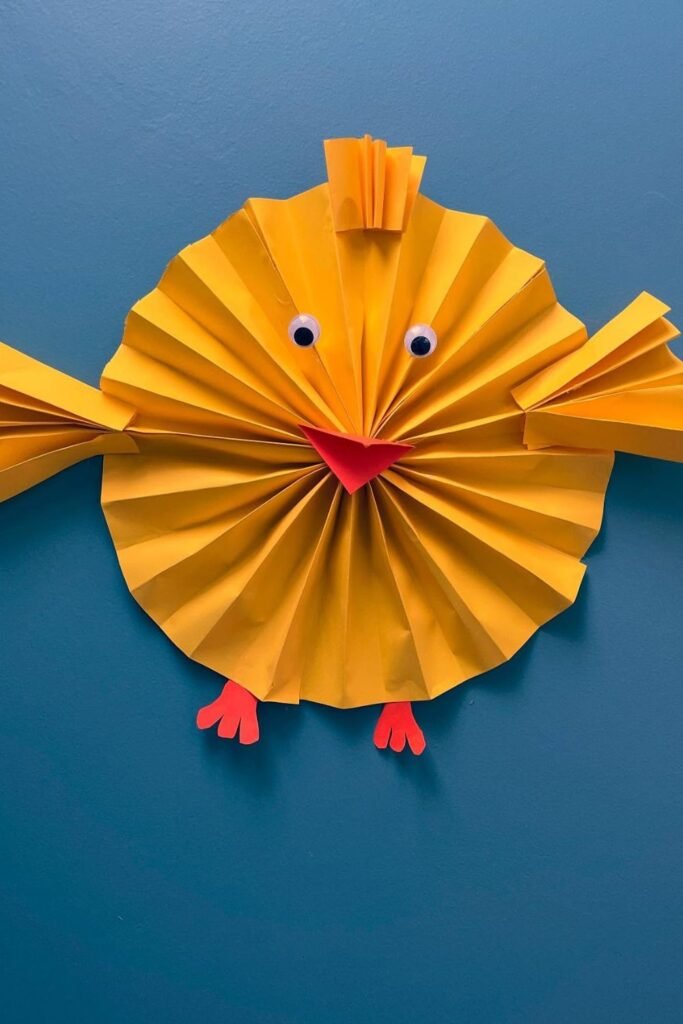 Adorn each side with paper scraps, googly eyes, and combs, transforming basic folds into whimsical chickens.