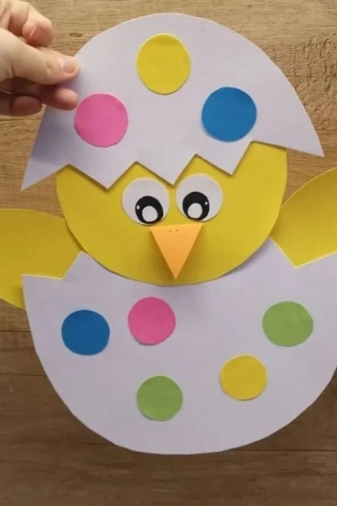 Opening and closing parts make crafts feel like a small reveal instead of a finished object. Build a round chick body first.