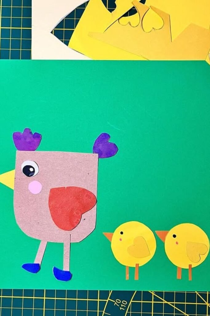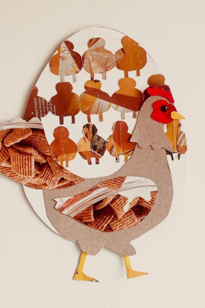 Bright colors pull kids in before they even realize they’re practicing patience. Cut a bold chicken shape for the top.