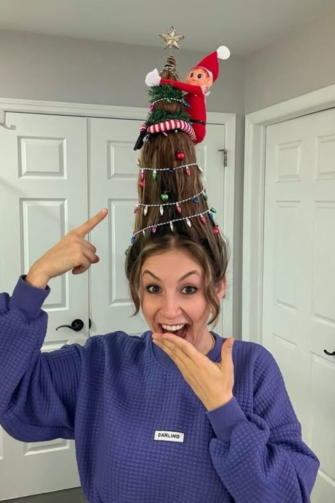Turning your hair into a full Christmas tree instantly makes you the star of any party, literally.