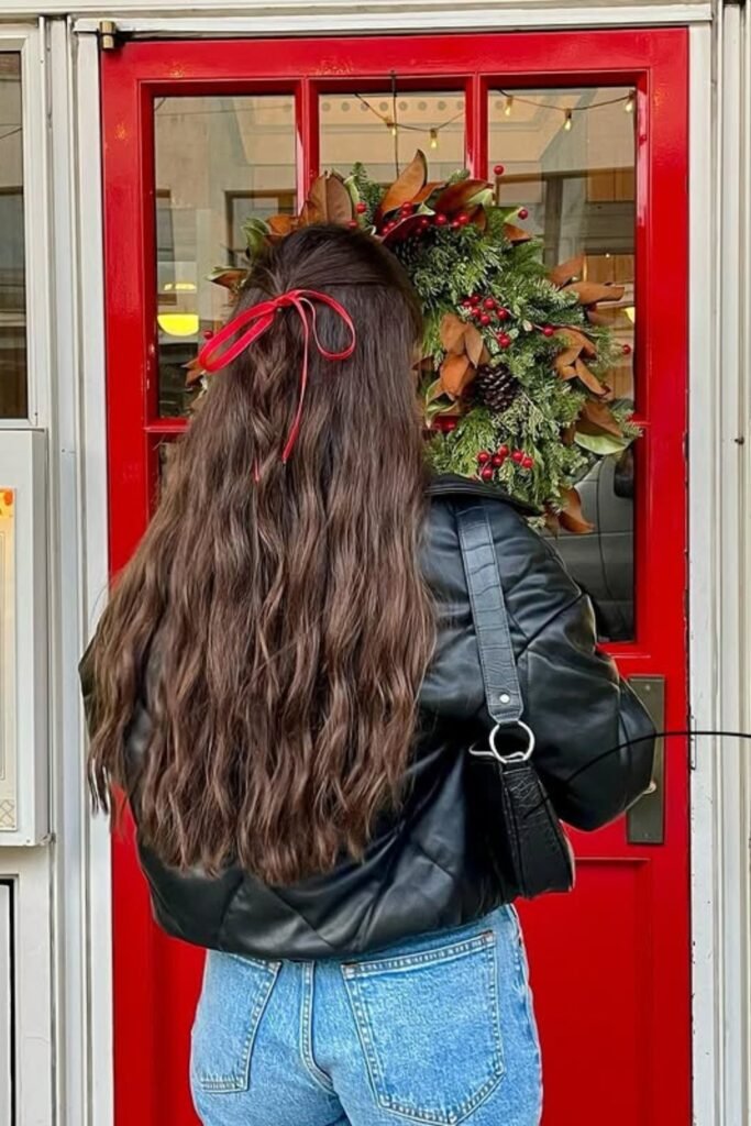 Soft waves paired with a red ribbon instantly create that cozy Christmas feel.