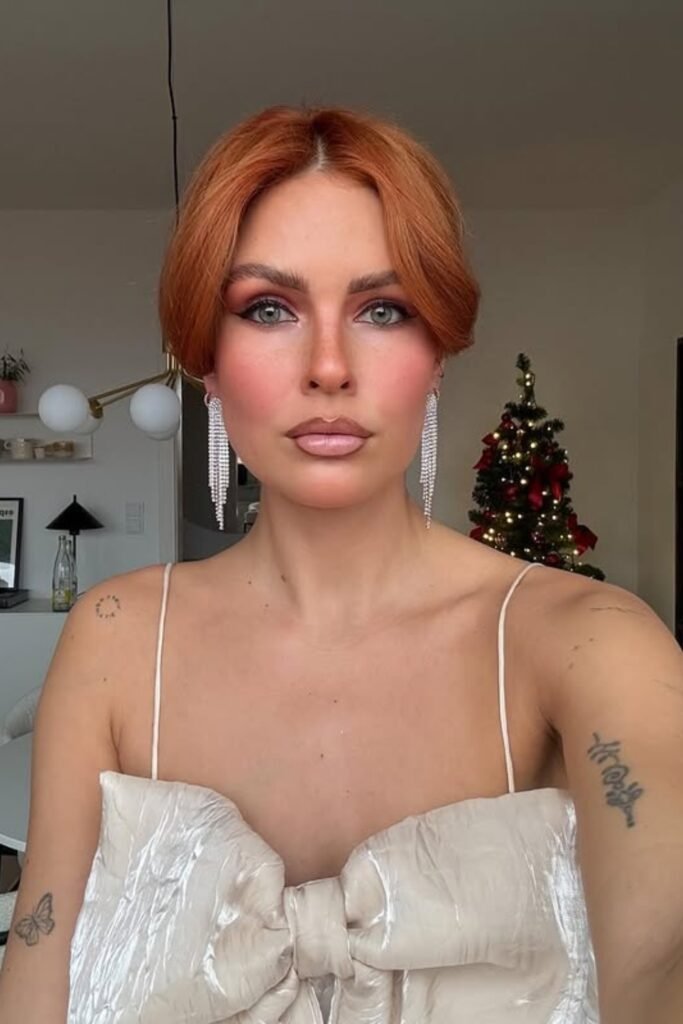 A loose side braid adds instant texture and style to short hair, making it perfect for casual Christmas outings or cozy dinners.
