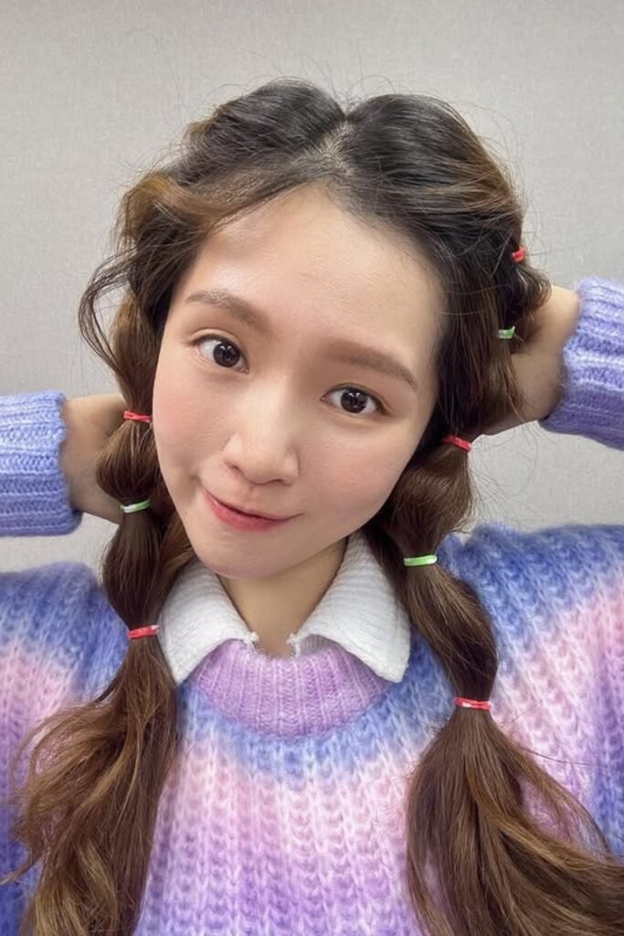 Colorful elastics and soft waves turn simple pigtails into a cheerful holiday look.