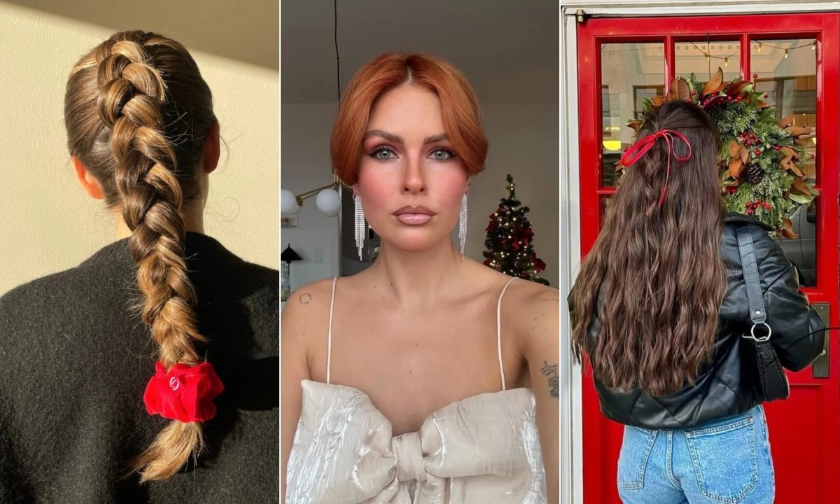 A lovely half-up bow hairstyle or sleek side braids with holiday decorations like ribbons or clips may make a big impact with short hair.