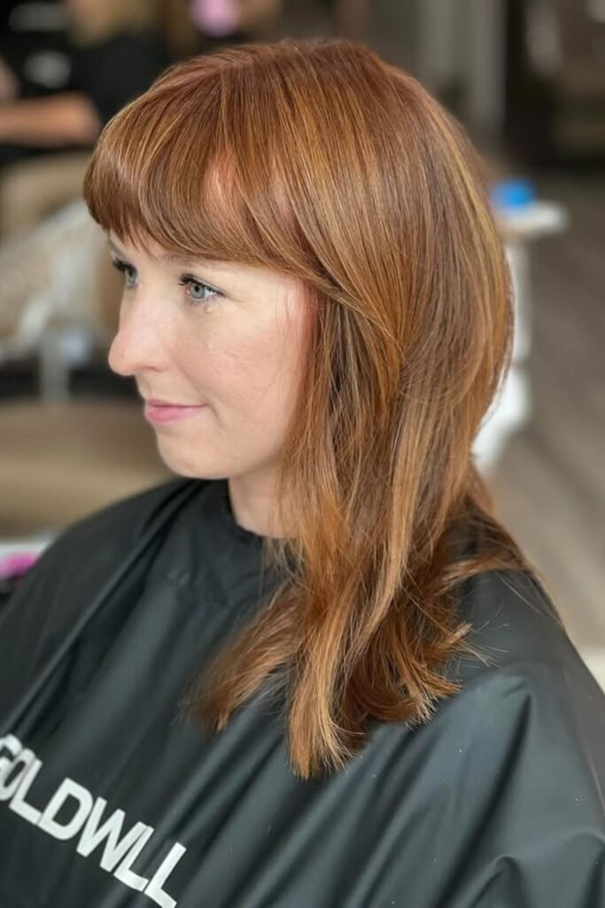 Movement pulls warm chestnut tones through this auburn, giving it a soft fire look that never feels harsh.