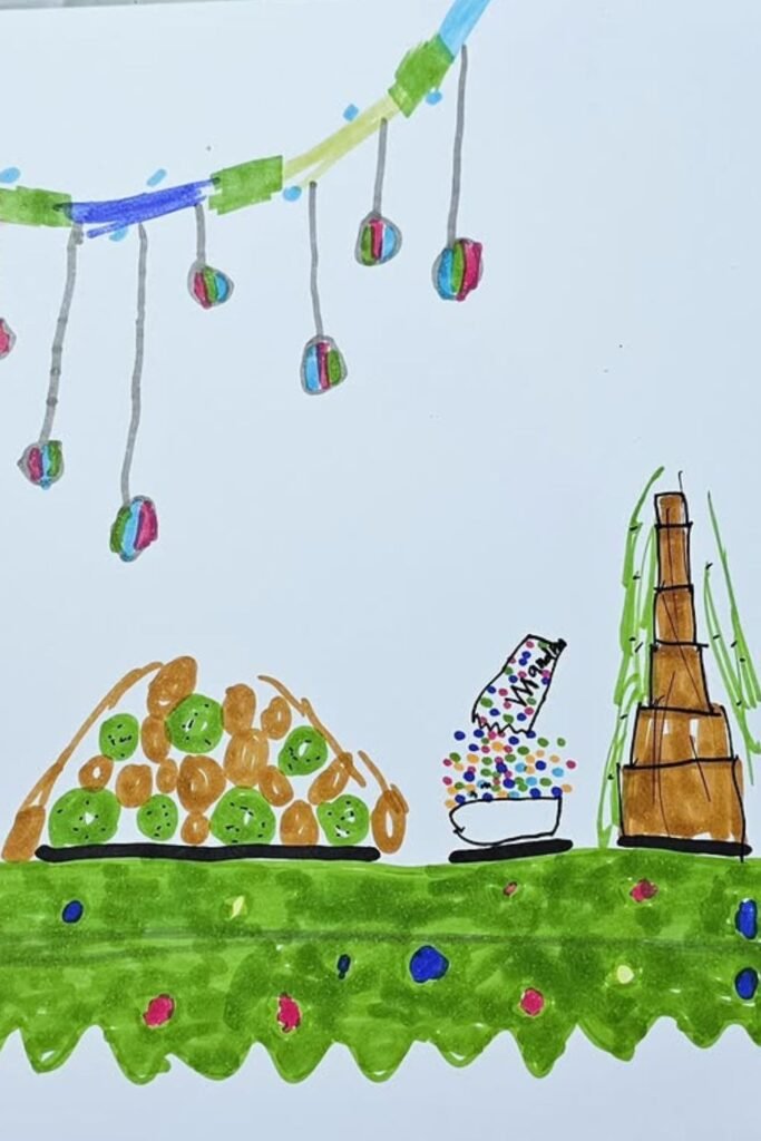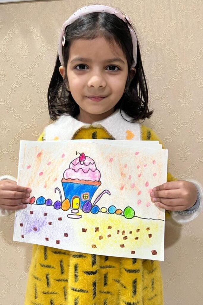 Sweet drawings lower the fear of “doing it wrong,” especially for younger kids. A cupcake house turns food into a place, which instantly sparks ideas.