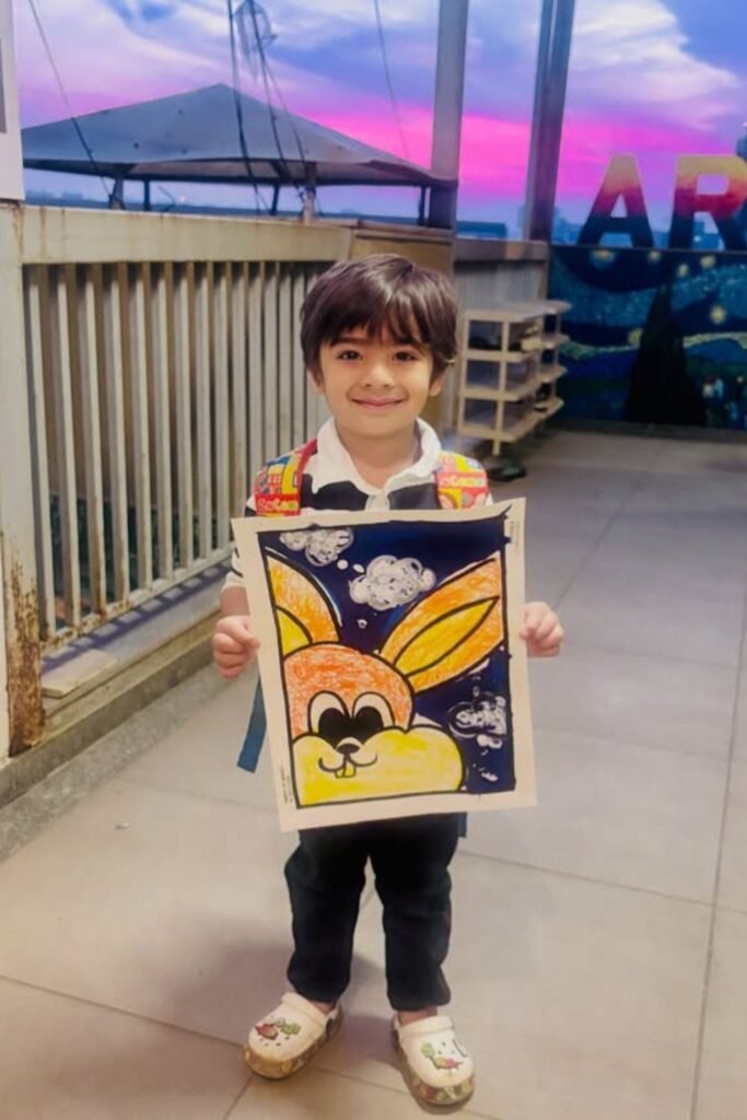 The colors remain vibrant and distinct. This approach works well during cultural celebrations or open art sessions, particularly for those children.