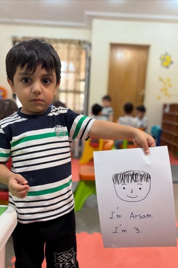 Names make drawings feel personal, and that’s why this works so well for preschoolers. Invite kids to draw a simple face.