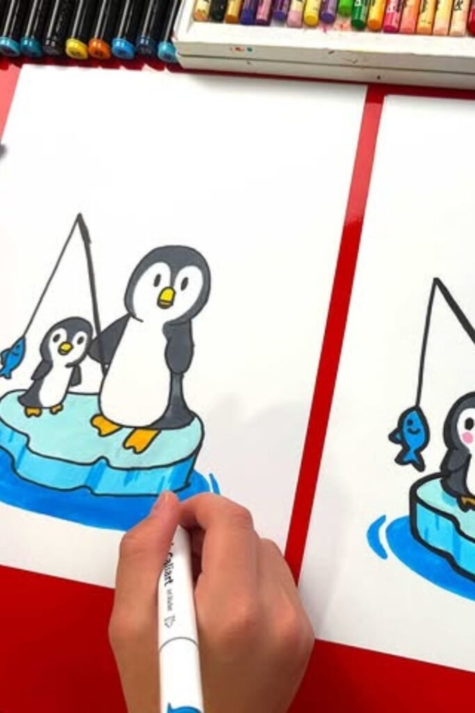 One penguin can remain straight forward, while the other is given additional features, allowing children to observe their advancement without feeling rushed.