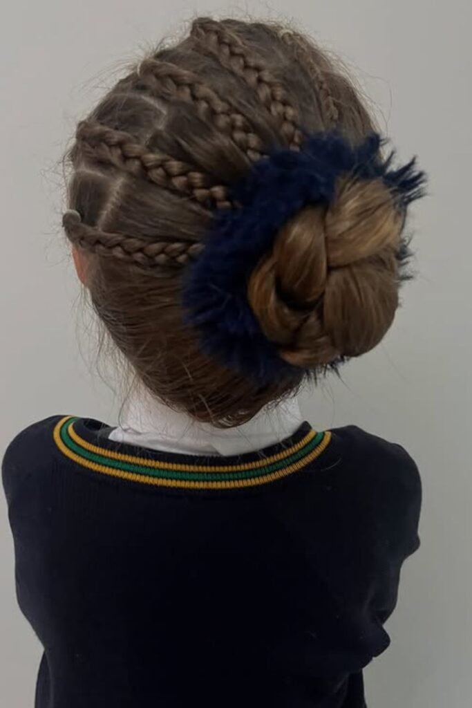 With a braided bun wrap, structured school mornings feel more reliable since the braids keep everything in place and the bun stays in place all day.