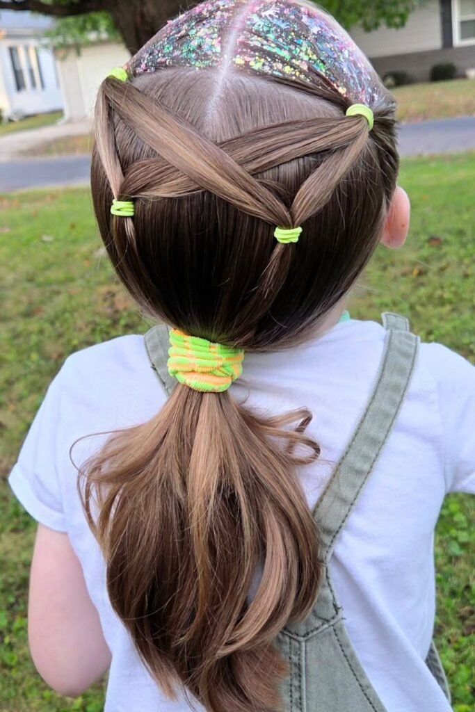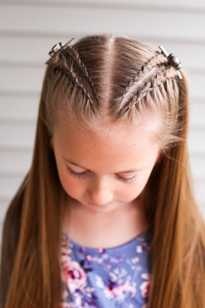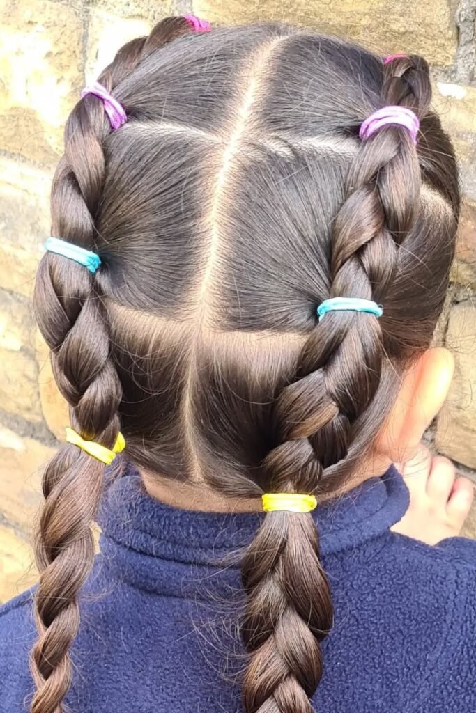 This technique works great for straight or thick hair since the braids keep it neat during classes, recess, and after-school activities.