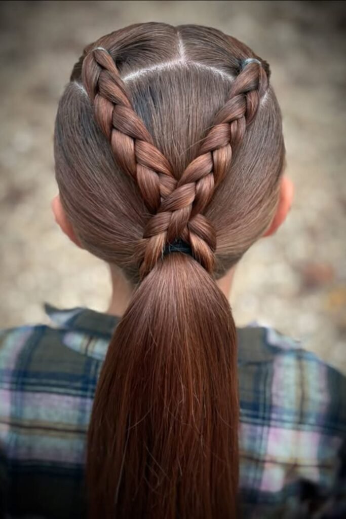 Mornings that are planned A V-braided pony keeps things neat because the shape pushes the hair tight at the top and gives the ponytail a clean, finished base.