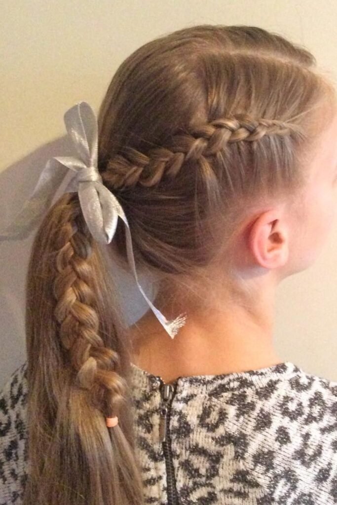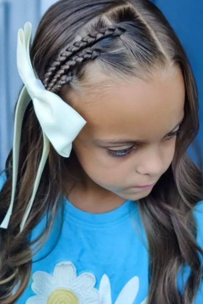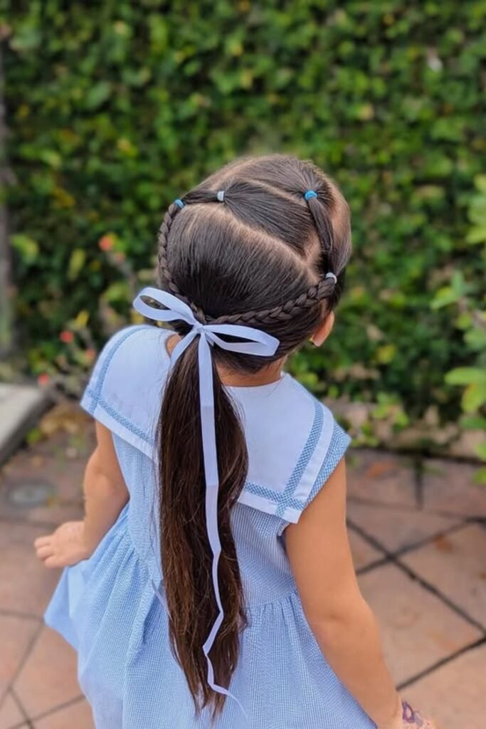Side-braided styles are easier to handle on school mornings since the braid keeps the front portion taut and the ribbon gives you grip that lasts all day.