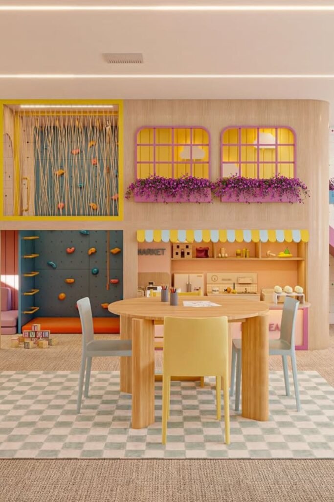 Different zones in one room help kids focus without crowding each other. A table becomes the thinking spot, climbing walls turn into search areas.