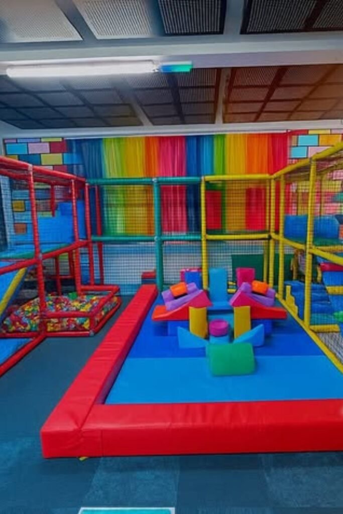 Built-in desks climbing panels and soft pits create natural task switching without telling kids what to do next.