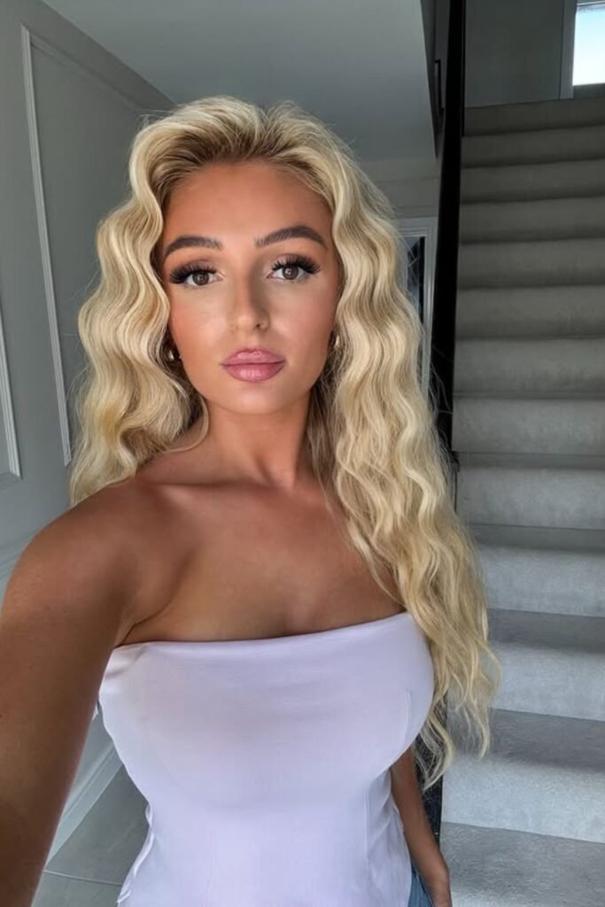 After that, apply loose waves from the middle of your hair down. Not letting texture get near the scalp keeps the style from falling apart.