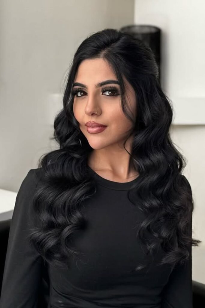 Old Hollywood glamour works best when hair needs shape without looking stiff. Create deep waves by turning the flat iron in one direction only, working in medium sections.