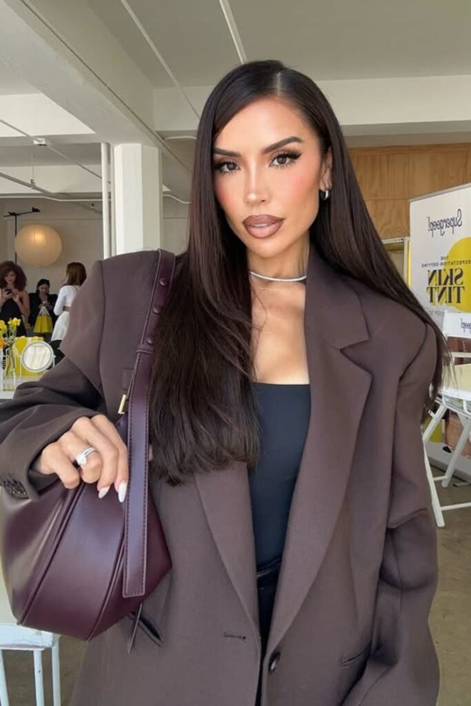 To make it look more structured, tuck one side behind your ear. Works well for workdays, everyday and meetings looks that need control instead of volume tactics.