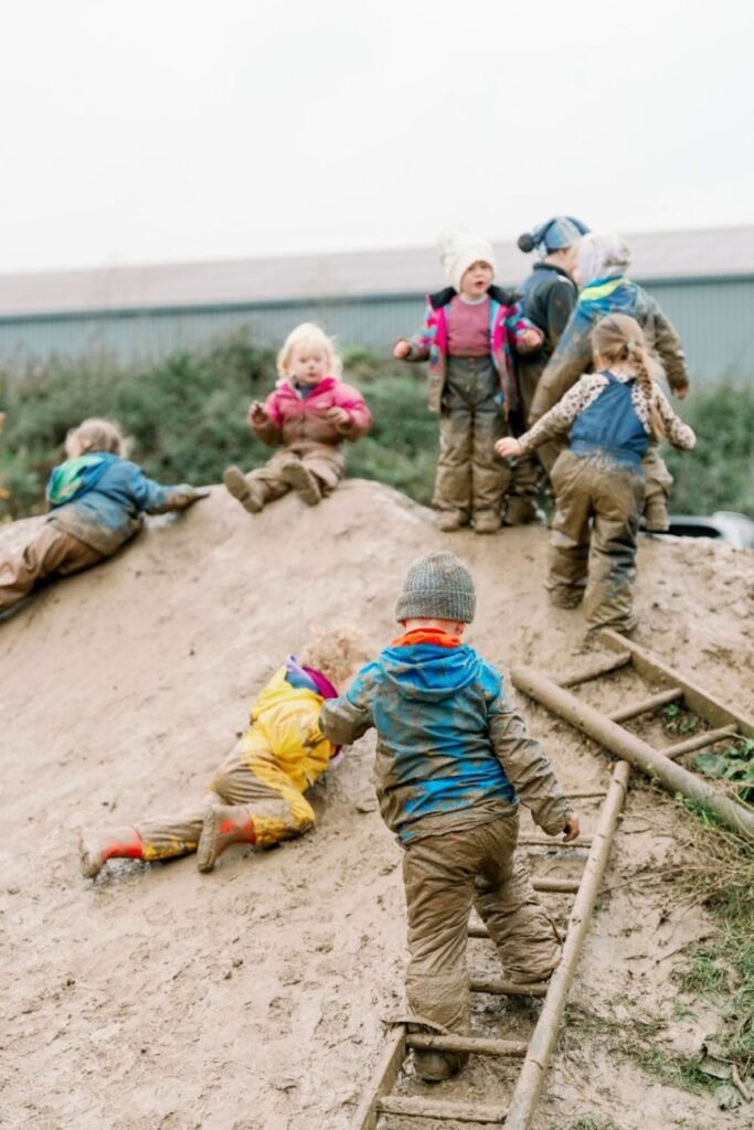 Energy explodes the second kids spot a dirt hill. No instructions needed. One climbs straight up, another crawls, someone slides back down laughing.