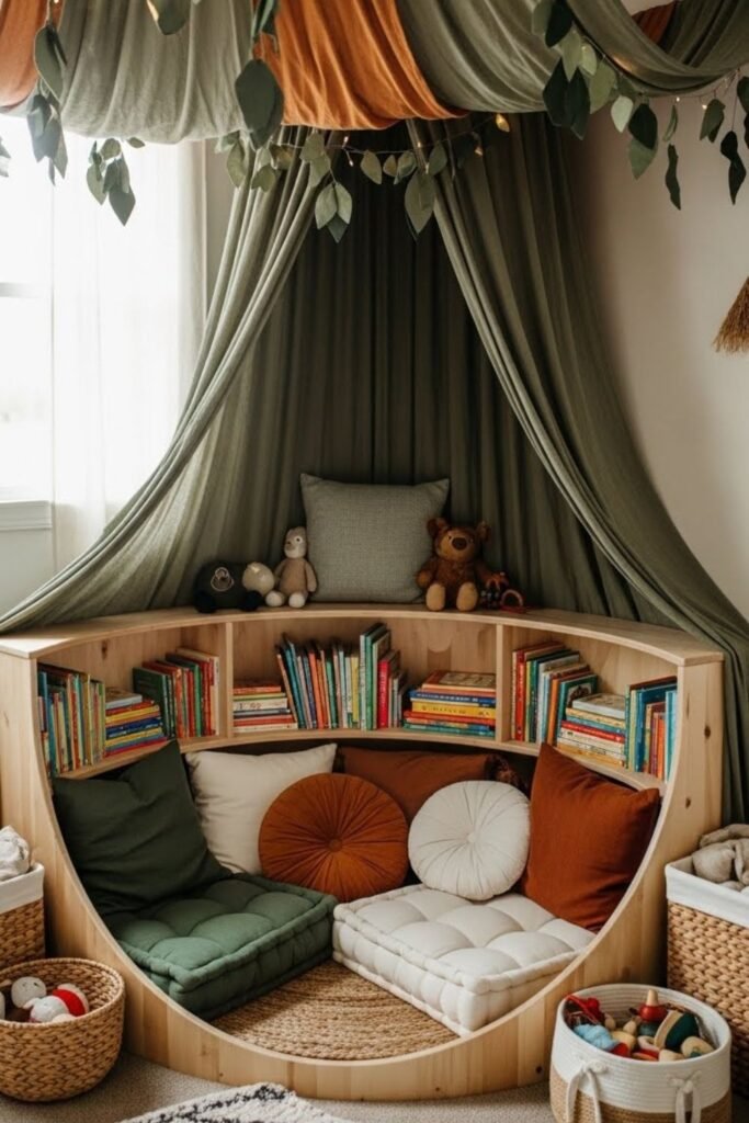 Storybook corners work best in kids’ rooms where play matters as much as sleep.