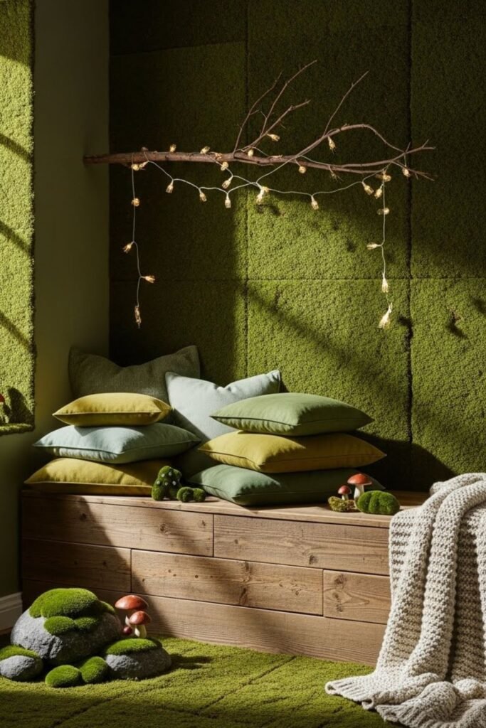 Empty corners often get ignored, but turning one into a soft moss-inspired zone changes the whole room.