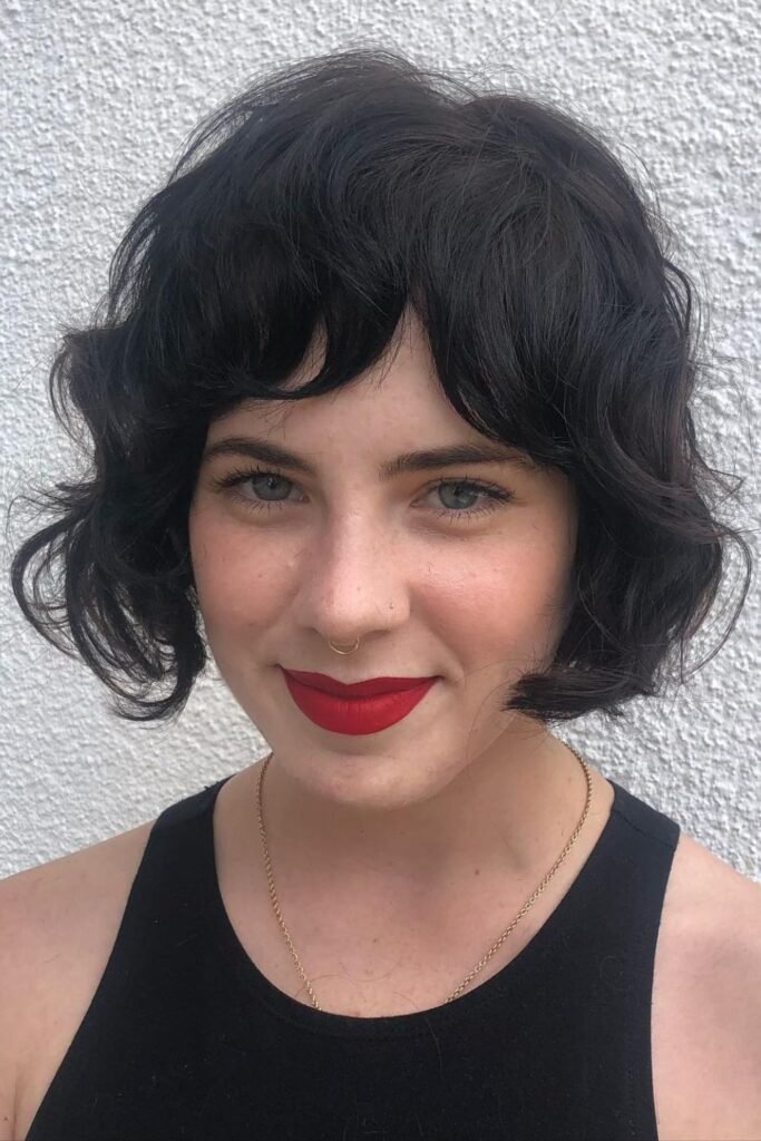 Full bangs keep those curls from tumbling into your face. This look is ideal if your hair already has a natural wave or curl and does not respond well to excessive styling.