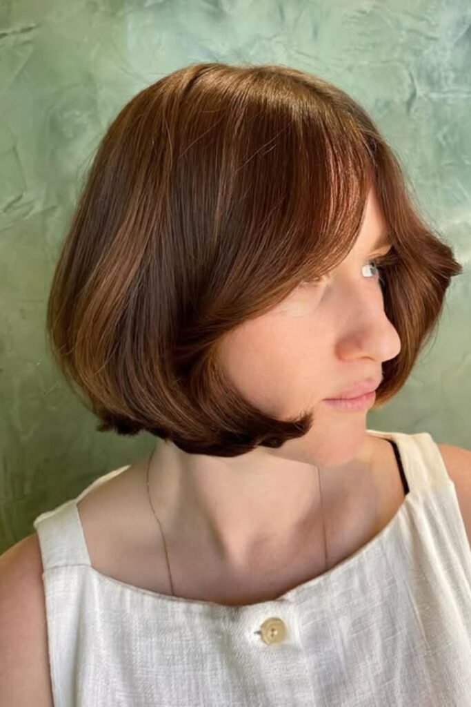 Neck-hugging cuts can feel risky, but this shape softens the risk. The rounded back keeps the bob from looking stiff.